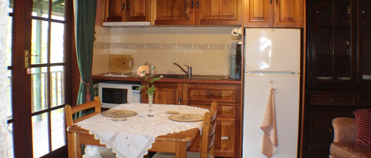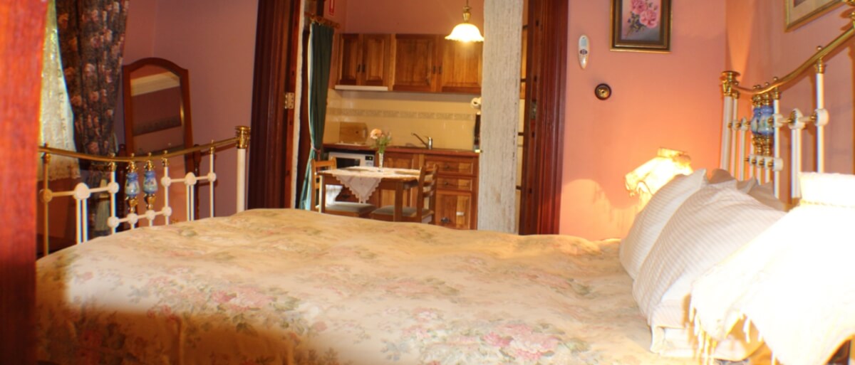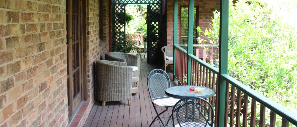 Offering a large federation style veranda opening onto native bushland, the Veranda Suite offers a full kitchen, dining room, large queen size bed, full bathroom with day spa, and unique to the other rooms a separate sitting room with a traditional wood fireplae. Fully air conditioned with wall mounted television and DVD player, the Veranda Suite also offers a full outdoor stereo system with barbeque facilities on the Veranda itself.
